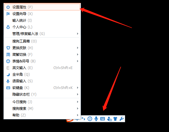 1、大家打开搜狗输入法,右键单击输入法,打开【设置属性】;