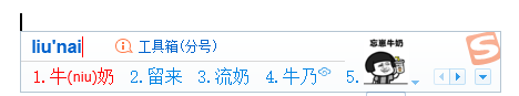 4、如图所示,当我们设置好后,如果受方言习惯将牛奶输入为【liu?nai】,也完全可以识别出正确的字词。