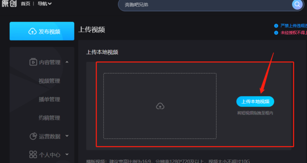 2.?进入到发布视频的界面后,接着点击上传本地视频。