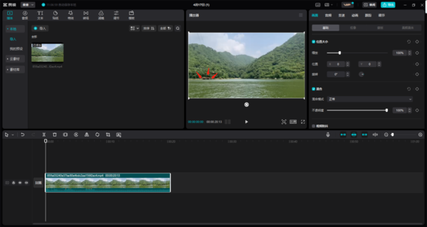1、首先,我们打开剪映,然后添加我们需要处理的原视频,该教程中,我们以对岸的护栏作为追踪对象;