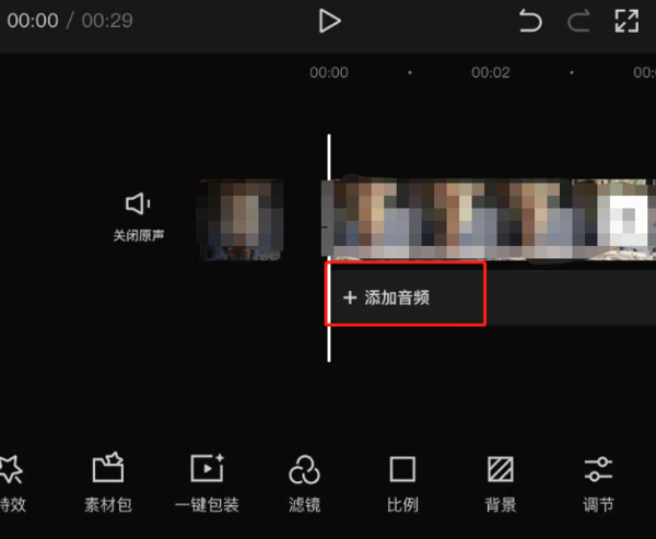 1、打开剪映后,点击如图所示的【添加音频】按钮;