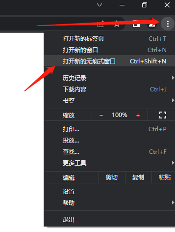 开启无痕模式的方法也非常简单,我们打开谷歌浏览器,在左上角点击【三个点】,之后选择列表中的【打开新的无痕式窗口】;