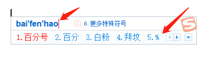搜狗输入法作为一款智能输入法,可以智能识别我们想要的符号,比如当我们想输入一个百分号,只需要将拼音打出来即可,搜狗输入法就会自动识别出一个百分号字符的选项供我们选择,如图所示,其他的符号也是同理。