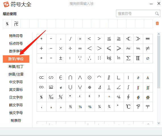 搜狗输入法数学符号在哪里找