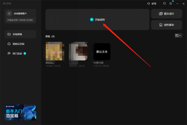 1、首先,打开剪映电脑版,又名剪映专业版,点击【开始创作】,将所需要的视频素材先导入至软件中;