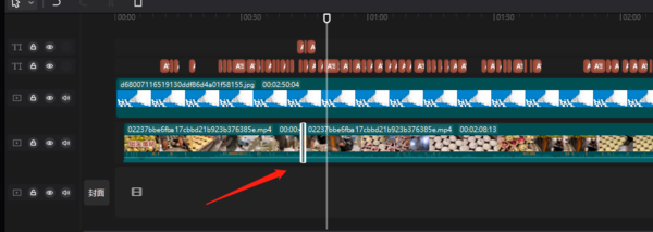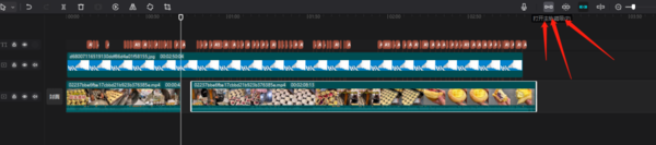 2、将素材导入到主轨中后,点击如图位置,先打开【主轨磁吸】效果,确保我们在主轨中的素材是连贯的;