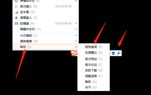 最后如果还是没有解决,可能是官方的问题了,大家右键单击输入法的窗口,找到【帮助】,在其中点击【报告错误】后尝试联系官方解决。