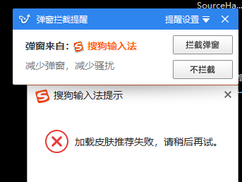 大家使用搜狗输入法设置输入法皮肤的时候,就要打开输入法中的【皮肤推荐】选项,但有些时候会出现如图所示的【皮肤推荐加载失败】的提示,这是为什么呢,下面一起来看看吧。