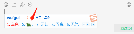 如图所示,小编这里输入【乌龟】的拼音,在弹出的框中就可以看到【乌龟】的表情符号,这一点在日常聊天中非常实用。