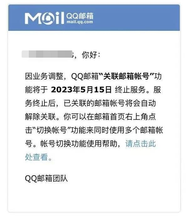 2023年4月12日,天极小编收到了来自QQ邮箱发布的消息,消息内容是关于“关联账号功能下线”,其公告内容为“因业务调整,QQ邮箱“关联邮箱帐号”功能将于2023年5月15日终止服务”,服务下线之后,已关联的QQ邮箱号也会自动解除关联。