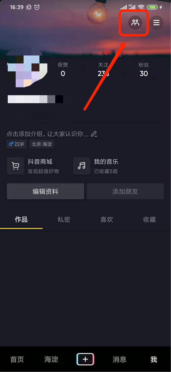 第二步,点击右上方两个小人的图标进入主页访客页面;