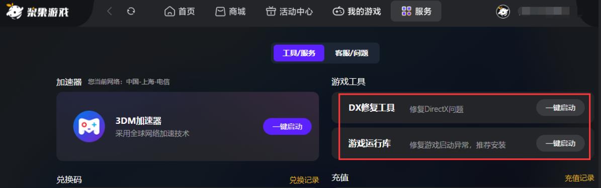 选择右侧的游戏运行环境库和DX修复工具,点击修复即可。