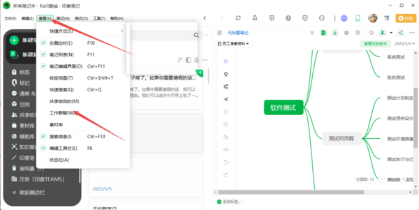 第一步,启动电脑端的印象云笔记,点击顶部菜单栏中的【查看】功能,接着选择【工作群聊】选项。