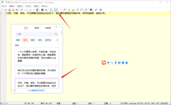 第五步,紧接着在帮写的内容中,就是搜狗输入法通过AI智能写作帮我们产出的内容了,找到想要使用的内容,进行点击使用即可。