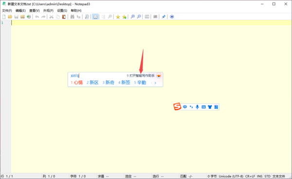 第三步,紧接着,在输入法的右上角的位置,我们可以看到【9?打开智能写作助手】的提示,我们可以直接点击它,也可以按下键盘上的【9】数字键。