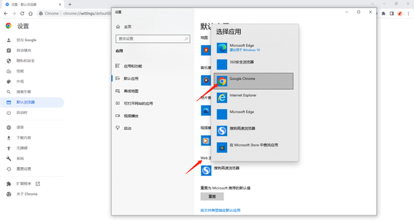 2、自动跳转到系统设置中,将【web浏览器】这一栏更改为【谷歌浏览器】即可。