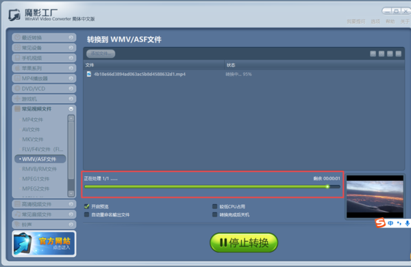 第八步,此时软件就会开始自动为我们转换视频的格式了,此时只需要耐心等待转换的完成即可。
