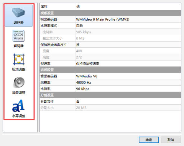 第六步,此时软件会弹出一个设置窗口,在此我们可以对视频、音频、字幕等进行设置调整,全部设置好以后,点击【确定】按钮。