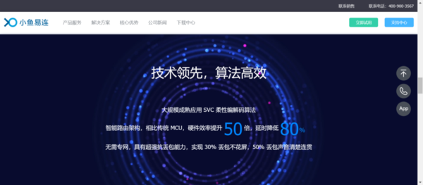 小鱼易连音频具备自动增益控制效果和自动噪声抑制效果,能够自适应回声消除,具有去混响处理能力。视频算法采用大规模运营验证的SVC视频技术,达到64K至8Mbps带宽自动探测,能够自适应呼叫速率。