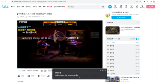 3、在使用谷歌浏览器观看英文视频时,会将音频转化为文字显示在下方。