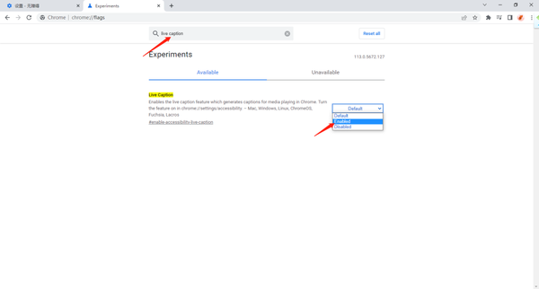 3、在搜索框中输入【live?caption】。将【live?caption】右侧改为【enabled】。重启浏览器,在【无障碍】中就能看到实时字幕功能了。