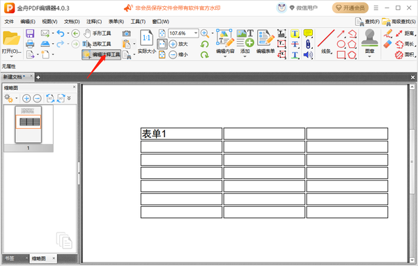 6、以下就是创建好的表格啦,点击【编辑注释工具】可在单元格中输入文本内容,注意:此表格仅支持输入文本内容,与Excel表格不一样。
