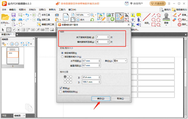 5、在弹出的窗口中,设置域数输入需要插入的行和列,点击【确定】。