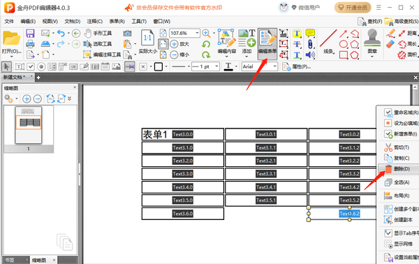 7、需要删除单元格的话,点击【编辑表单】,然后,按住Ctrl键选择需要删除的单元格,单击鼠标右键选择【删除】就可以了。