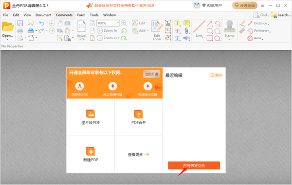 1、打开金舟PDF编辑器,点击【打开PDF】将要处理的PDF文件打开。
