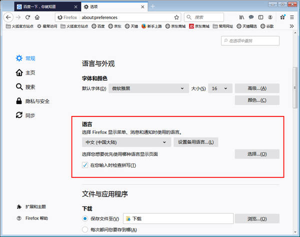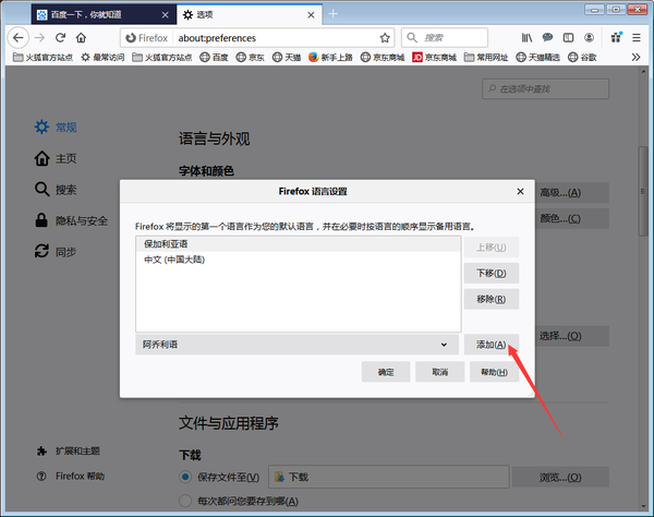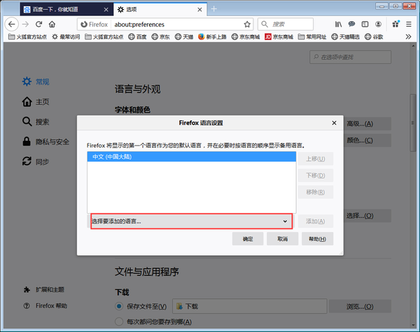 火狐浏览器修改语言显示