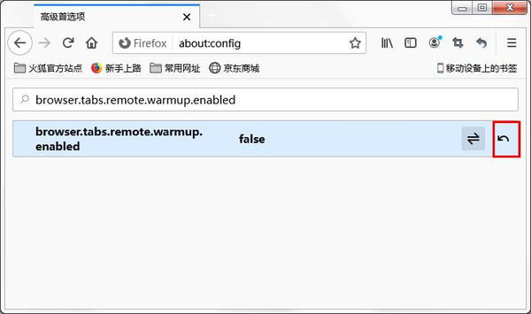 4、然后继续点击上面的搜索框,在搜索框中输入browser.tabs.remote.warmup.enabled,然后按下回车键,找到设置项。