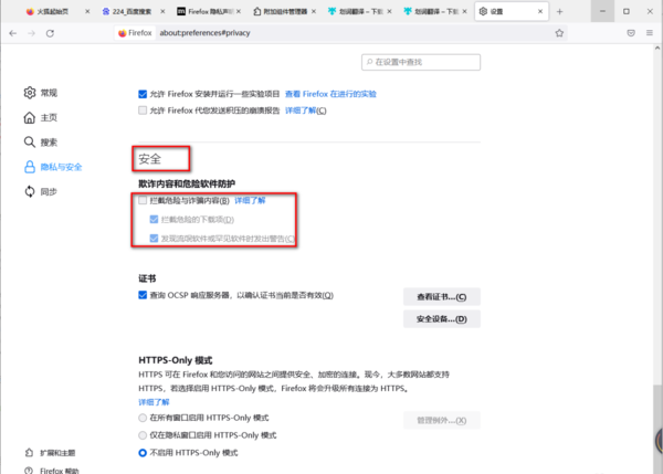 取消勾选以后,我们在浏览网页的时候就不会收到安全拦截提示了,不过小编还是建议大家在访问完你想要进入的网页以后,还是需要把这个功能打开,这样可以更好的保护我们上网信息不被侵犯,因为现在网络环境比较复杂,我们在网络上的隐私很容易被泄露,所以火狐浏览器的这一个功能就是为了保护大家的隐私而开发的。