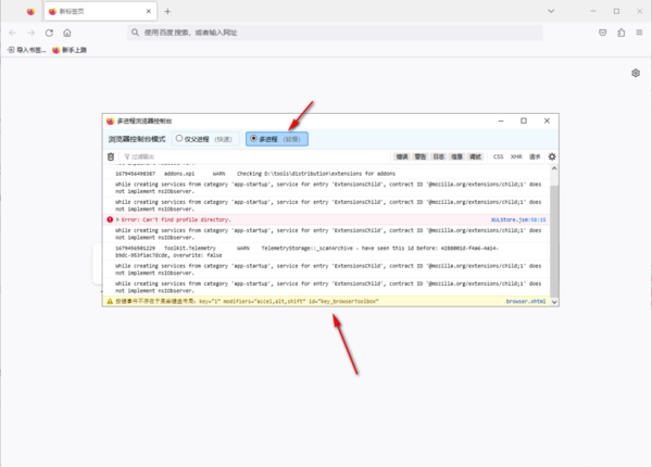 6、无论是通过哪种方法进入,都可以在这个页面查看到相关的警告、调试和错误代码等信息。