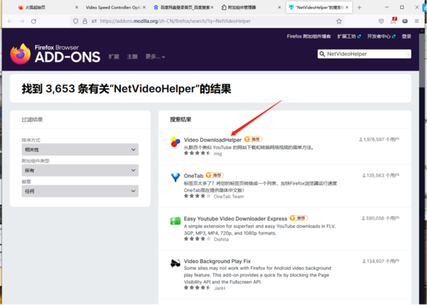 3、在新的页面可以看到,搜索出了3653条有关NetVideoHelper的结果,我们选择第一个视频插件,点击进入到该插件的详情页面。
