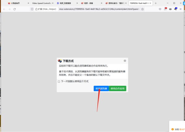 7、接下来会弹出一个让你选择下载方式的页面,我们选择【使用浏览器】即可下载。