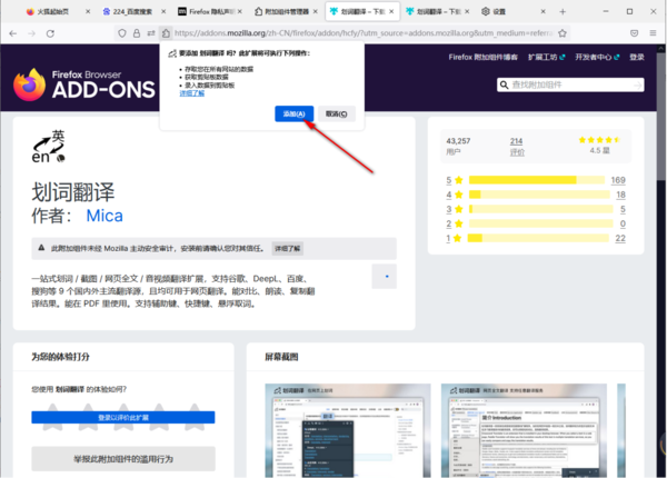 4、在该插件的详情页点击【添加到firefox】按钮,将该插件下载下来。
