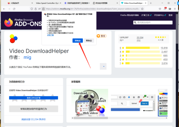 5、成功下载以后,在浏览器的上方会弹出一个提示的窗口,我们点击蓝色的“添加”按钮,即可将该插件添加到火狐浏览器中。
