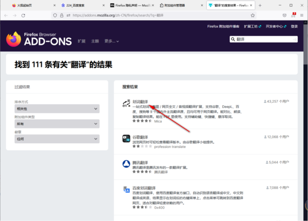 3、这时就会出现很多有关翻译的插件,我们选择一个进行安装即可,此时我们以第一个翻译插件为例。