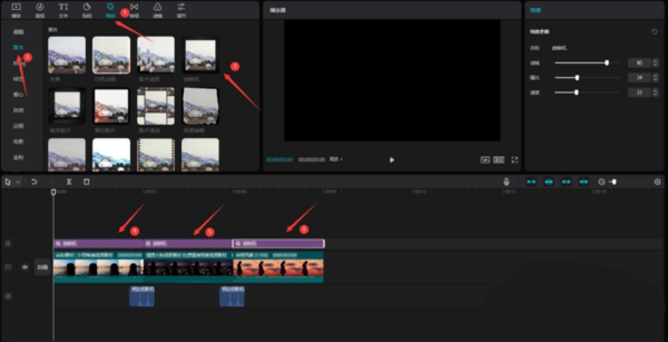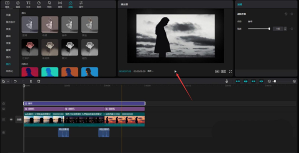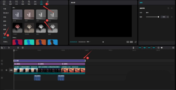第五步,选择“黑白中的赫本”滤镜,并将其添加到滤镜的轨道中,时间改为九秒。