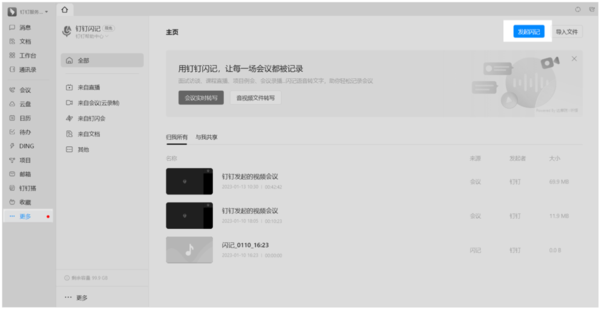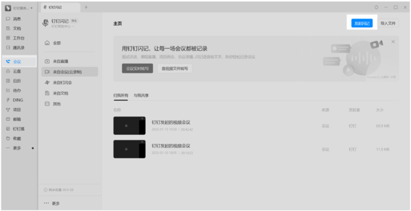 下面小编给大家介绍一下这个功能在哪里,首先进入电脑版钉钉,选择左侧的会议功能,并点击云录制,然后就可以在“云录制”的界面找到右上角的闪记功能了,点击即可发起闪记。