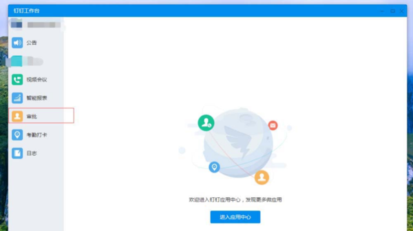 3、在工作台里面找到黄色图标的选项“审批”。