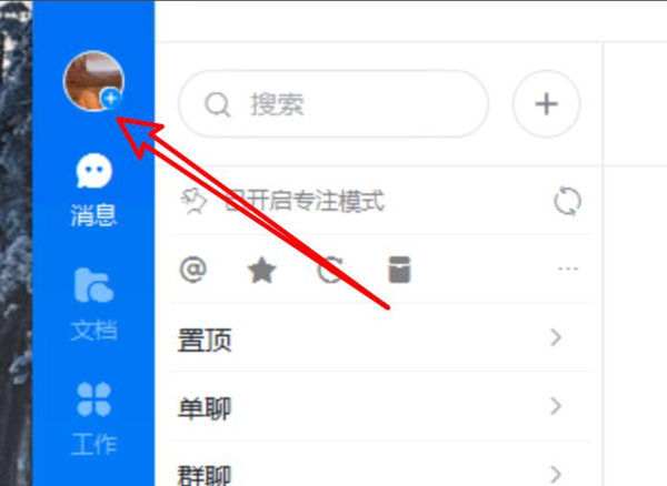 2、进入钉钉主界面以后,点击左上角自己的头像。