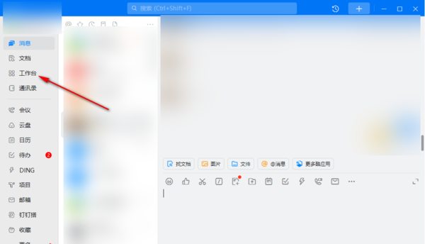 1.首先用电脑打开钉钉软件,在主界面左侧的选项栏里有一个“工作台”的选项,我们点击进入到工作台的页面。