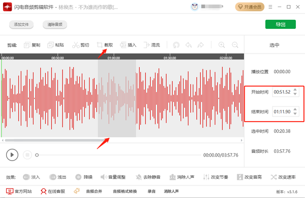 闪电音频剪辑软件怎么截取音频