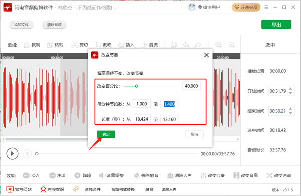 闪电音频剪辑软件怎么改变音频节奏节拍