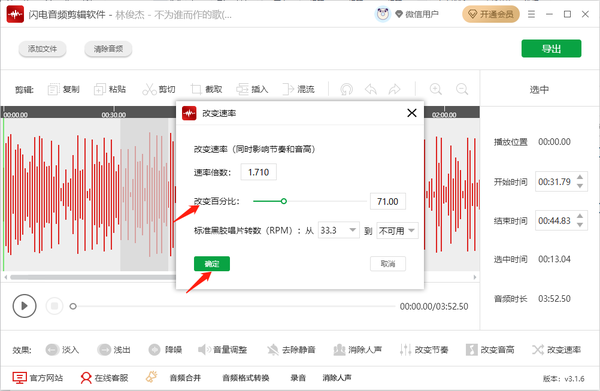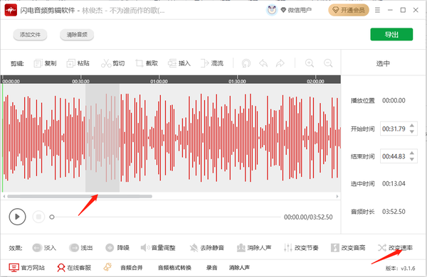 闪电音频剪辑软件怎么改变音乐播放速度