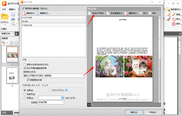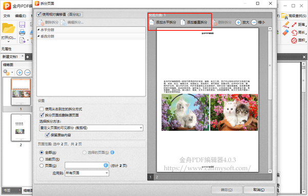 3、在【拆分页面】界面中,可以选择【添加水平拆分】或者【添加垂直拆分】。