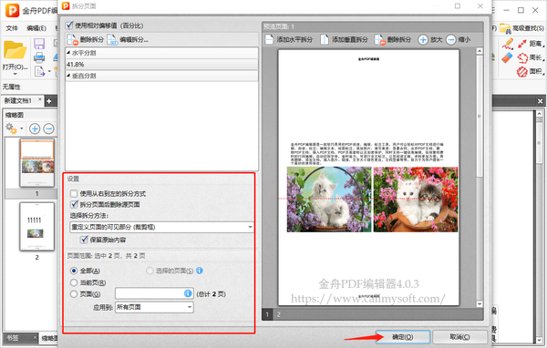 5、根据需要,可以设置拆分页面后是否删除源页面以及适用页面范围等操作,确认无误后,点击【确定】。