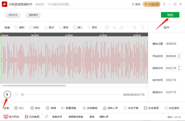 7、降噪完成后,点击【播放】可预览最终效果;然后点击【导出】即可。