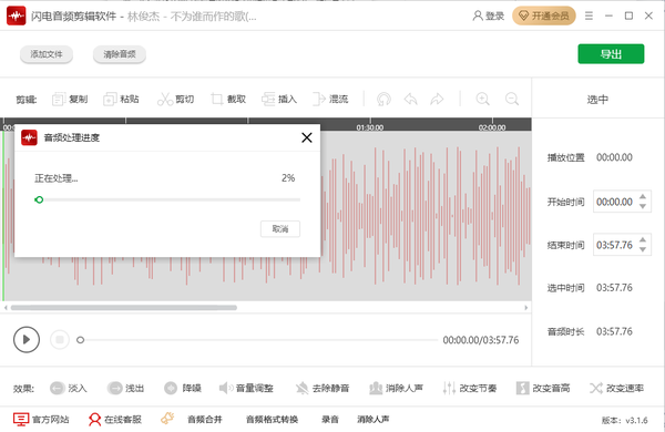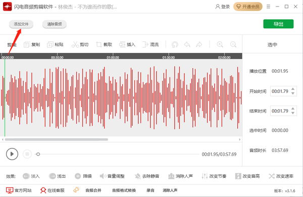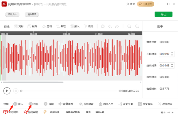 闪电音频剪辑软件怎么添加淡入淡出效果